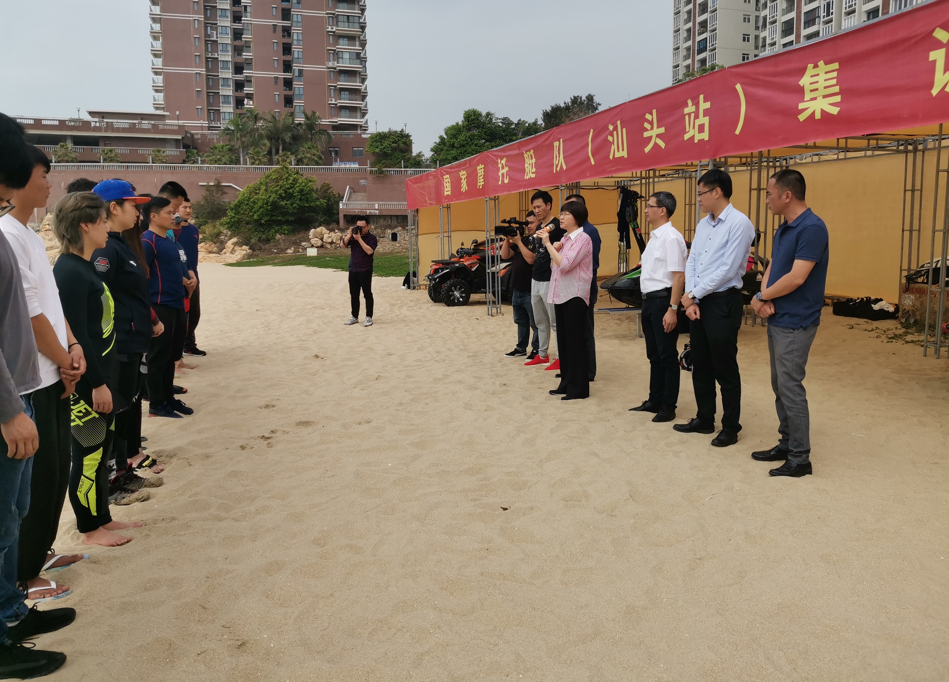3月17日上午,国家摩托艇集训队在美丽的南澳岛贝沙湾沙滩举行开训仪式,国家体育总局水上运动管理中心四部部长罗冰、汕头市文化广电旅游体育局副局长黄炳壮出席开训仪式。南澳县领导黄秋城和市县相关部门负责人参加仪式。