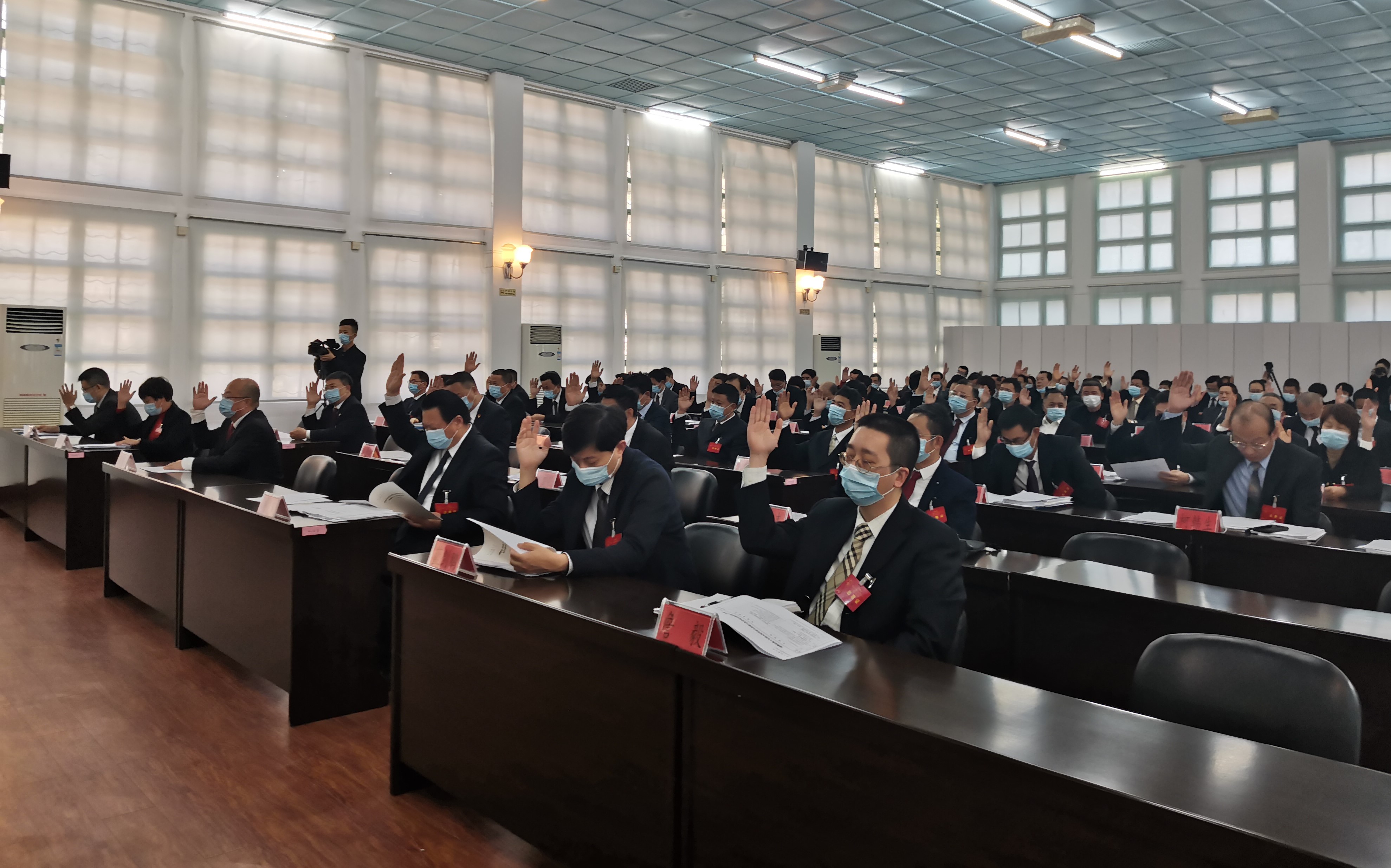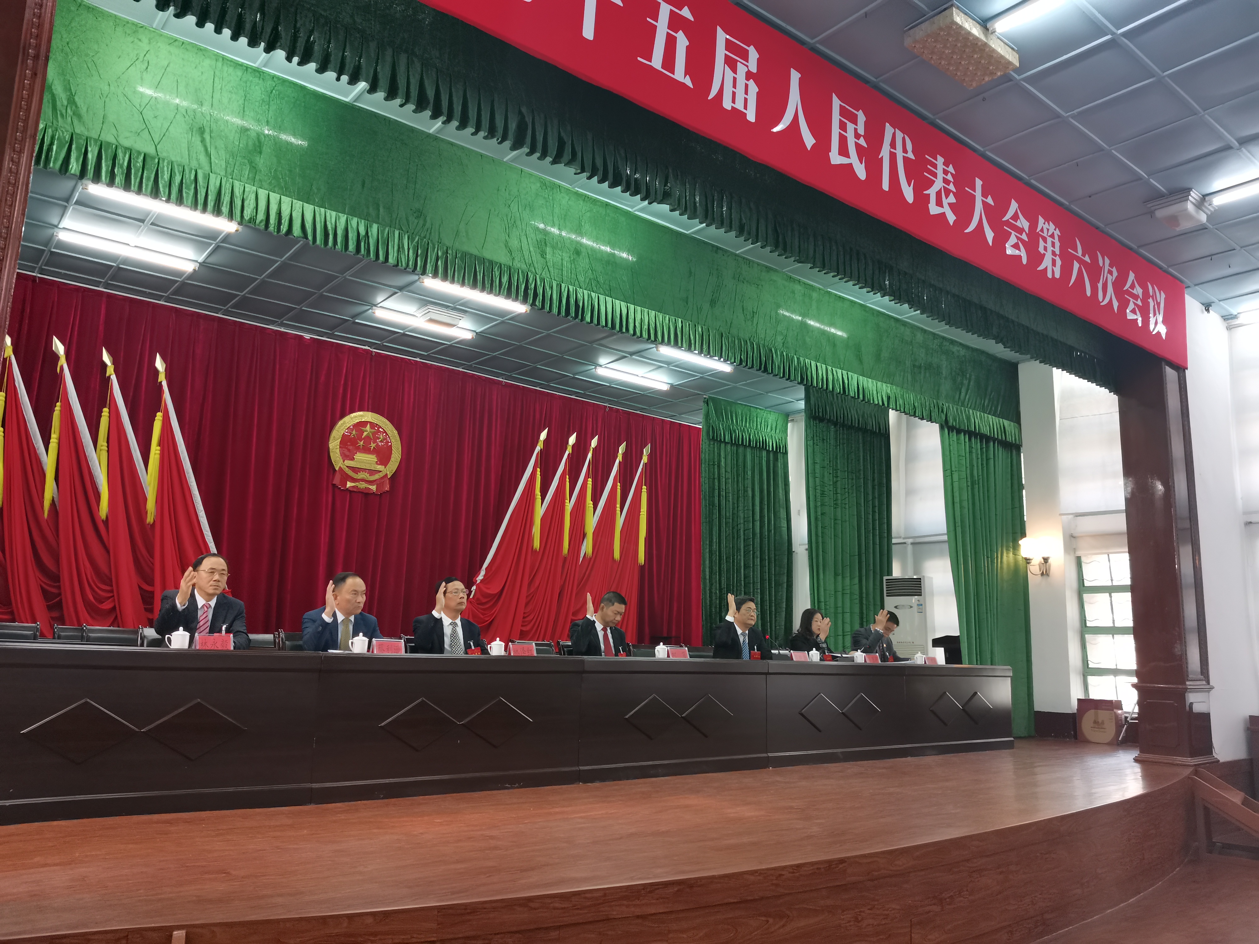 出席预备会议的县人大代表经过表决,选举产生了县第十五届人大六次会议主席团和秘书长,大会主席团由39人组成,林泽红为大会秘书长。