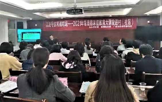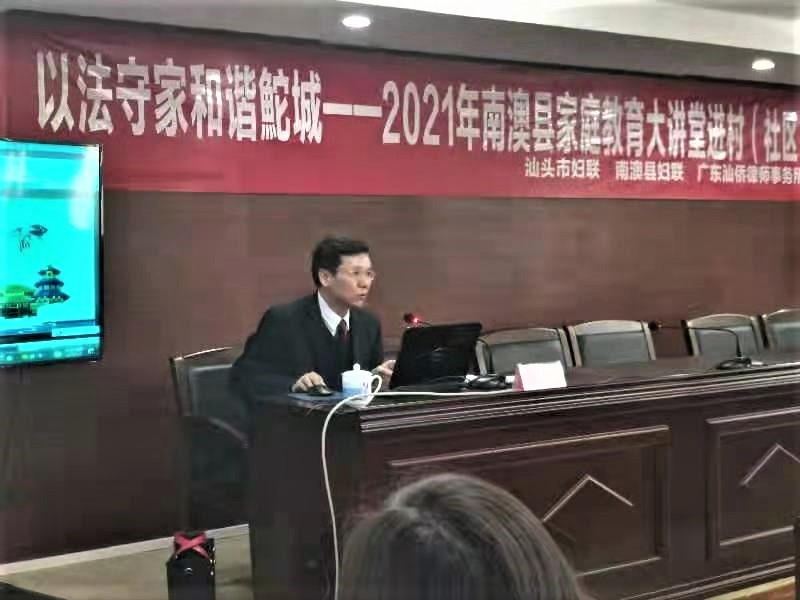 为贯彻落实习近平总书记关于“注重家风、注重家教、注重家庭”的重要论述精神,传承弘扬好家教好家风,同时进一步推动《民法典》走到人民群众身边,特别是走进广大妇女群众心里,进一步促进家庭和谐,营造良好社会氛围。3月4日上午,汕头市妇联、南澳县妇联、广东汕侨律师事务所联合举办了“以法守家 和谐鮀城”家庭教育大讲堂进村(社区)活动。县领导黄淑华出席活动,县妇联班子成员、妇联执委、三八红旗手和三八红旗集体负责人参加活动。