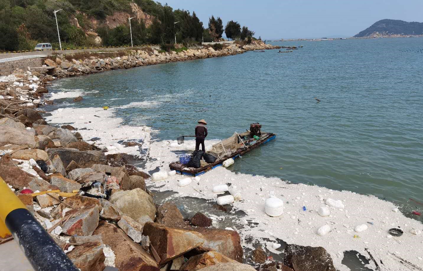 据了解,去年12月,我县在开展对海域养殖区域及沿岸进行清理整治工作的同时开始推行生态养殖,禁止使用白色泡沫浮球。到目前为止,全县生态养殖示范区所有浮球已更换为生态环保养殖浮球。然而经常会出现从上游其他地方飘来垃圾的情况,特别是最近风大,大量海漂垃圾从上游一些地方漂流到在西山海域,给海域清理增加了难度。