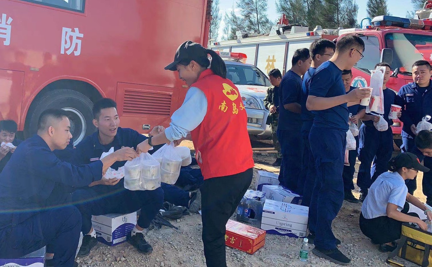 在校友群了解到家乡山火的情况后,南澳中学2003届和2004届的毕业生心急如焚,自发组织起来,纷纷捐款捐物,并让在南澳工作的同学与有关部门和义工队伍联系,并由他们来组织、配送物资上山。捐款捐物的同时,本地的校友也积极参与到志愿者行列中来,不辞辛苦为一线灭火工作人员送餐送水。据悉,本次南澳中学2003届校友共捐出两百多份餐食,几十箱水和面包。南澳中学2004届校友也捐出近百箱的矿泉水、功能饮品等近万元的物资。