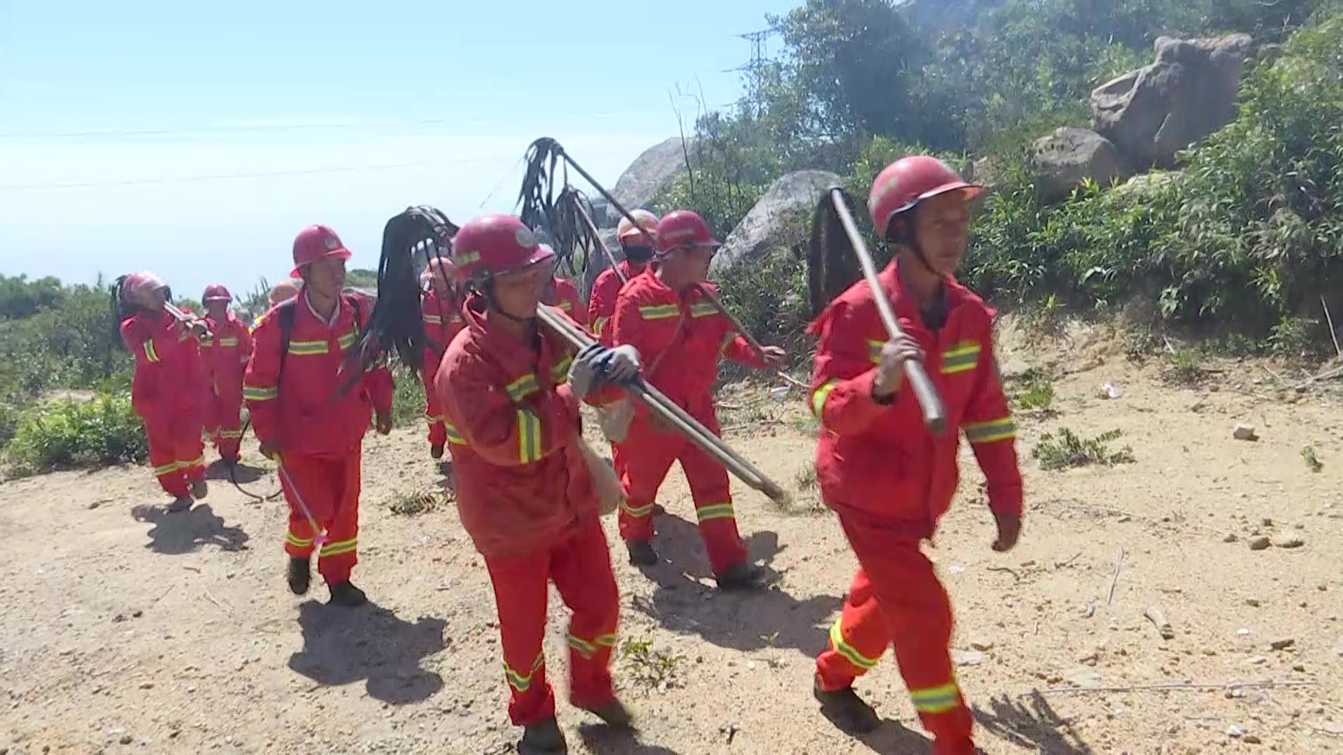 在山上,灭火战士们争分夺秒,与山火较量,用他们的英勇无畏守护海岛群众的“岁月静好”。