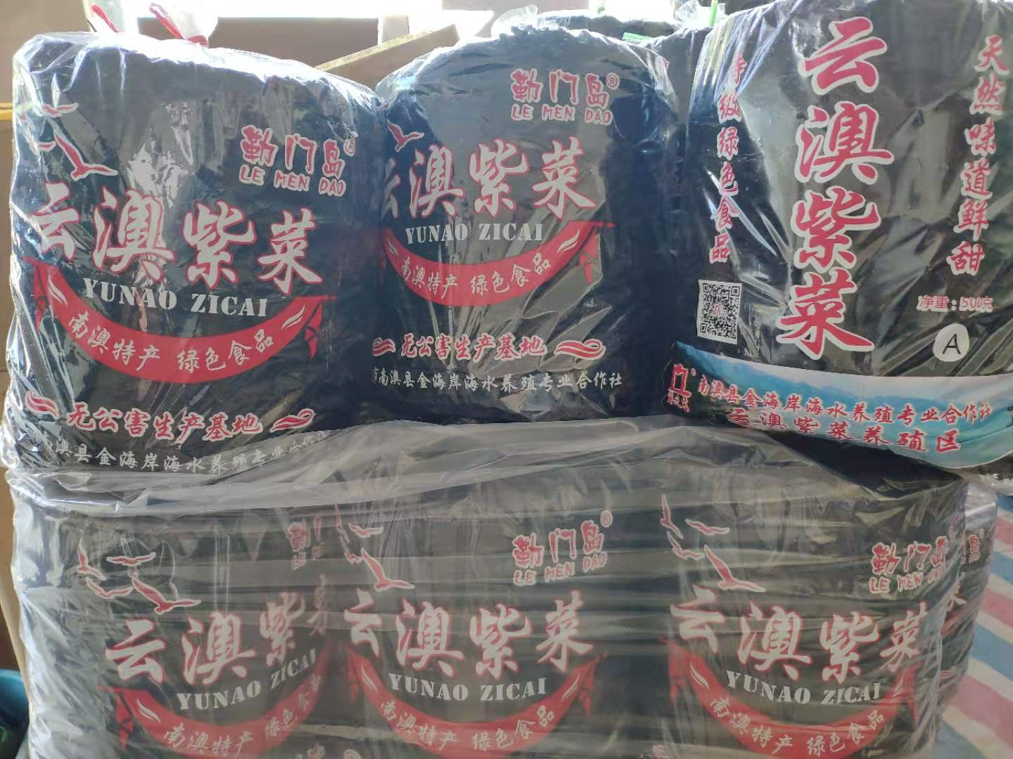 以色泽紫黑透明、质脆鲜甜、营养丰富而成筵席汤料佳品的南澳名优特产的紫菜干品,今年喜获丰收,特别是首次采集的紫菜,脆甜爽口,口感绝佳,成为大家所追捧的海产品之一。