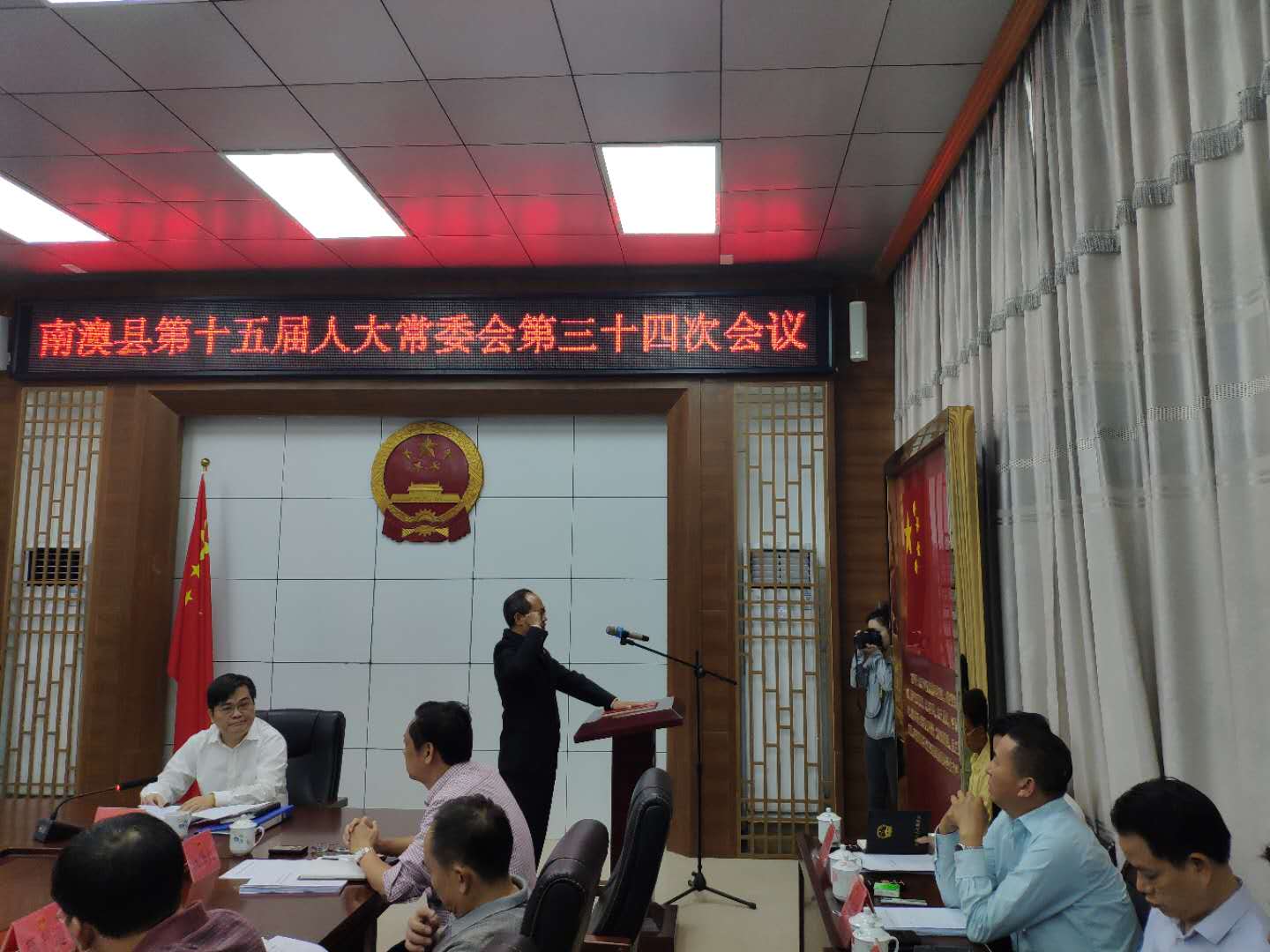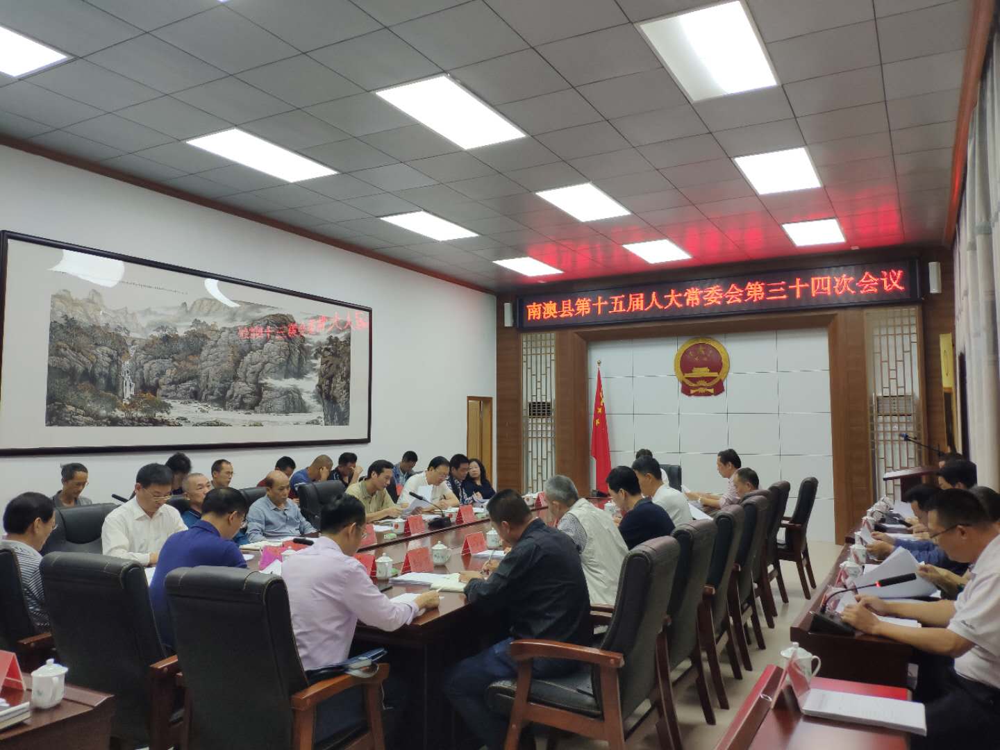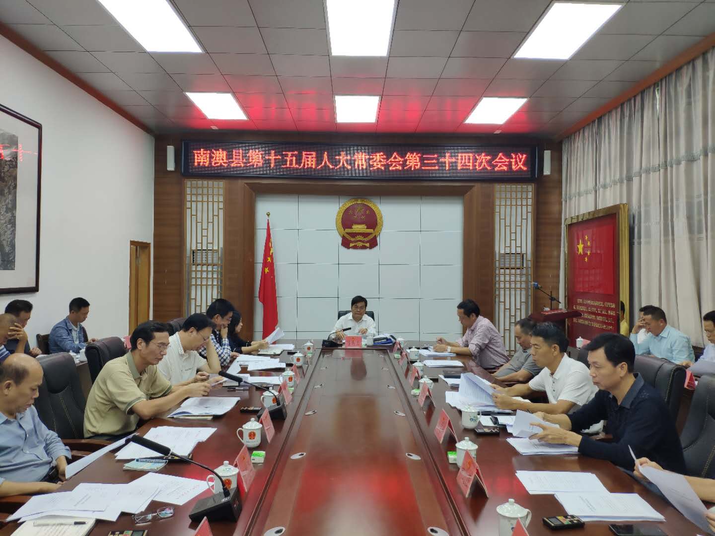 11月6日,南澳县第十五届人大常委会举行第三十四次会议,县人大常委会主任陈映山主持会议。县人大常委会副主任林泽红、黄卫丹、蔡利逊、蔡奕生、林永毅和常委会其他组成人员出席会议。县委常委、常务副县长黄海生、县法院院长颜映丰、县检察院检察长郑瑞洲及县监察委、县发改局、县财政局、县自然资源局、县住建局、县教育局、市医保南澳分局、市社保南澳分局主要领导;县人大各专委主任委员、副主任委员,常委会办公室及各工委主任、副主任;各镇人大主席;部分县人大代表列席会议。