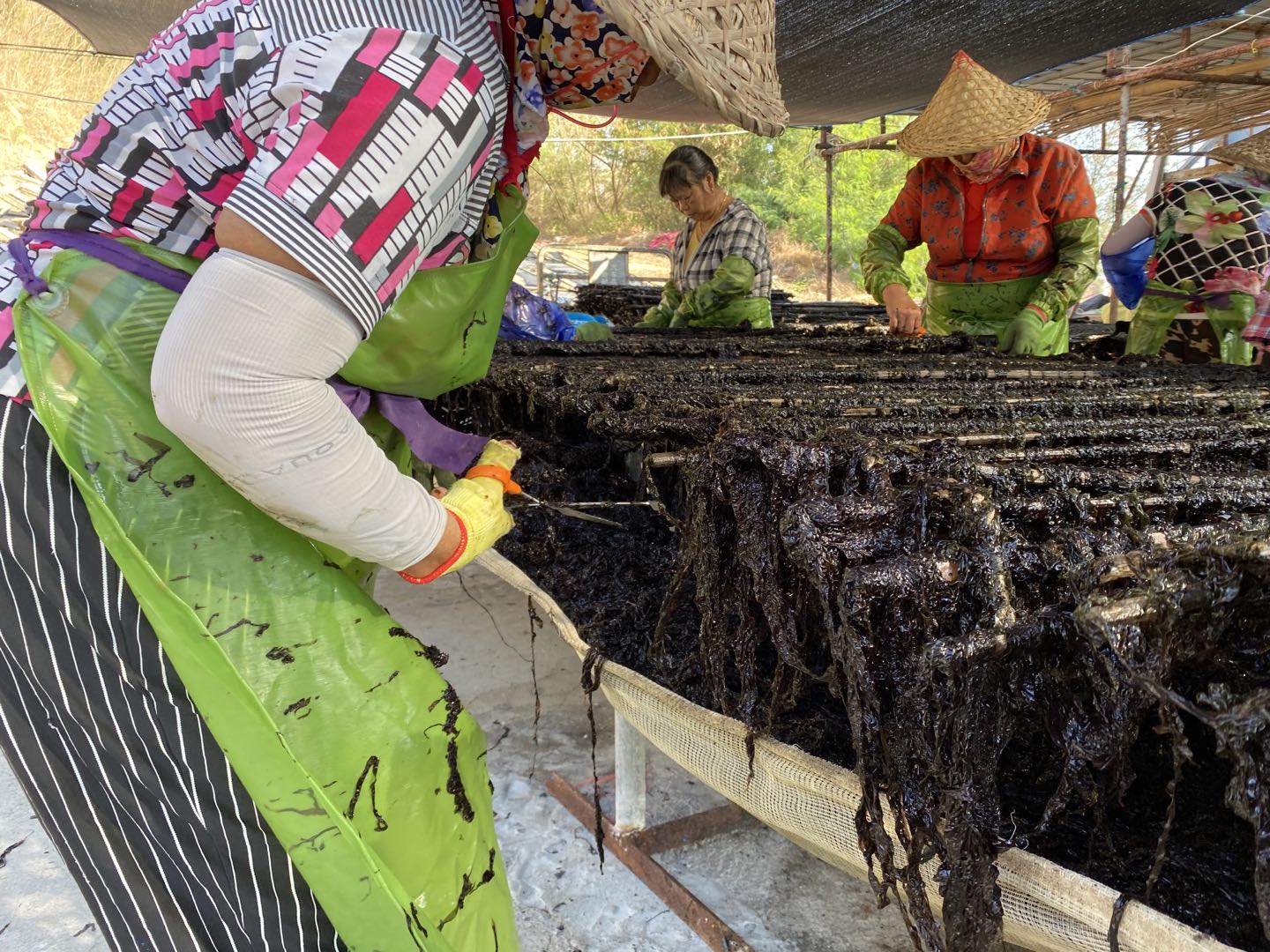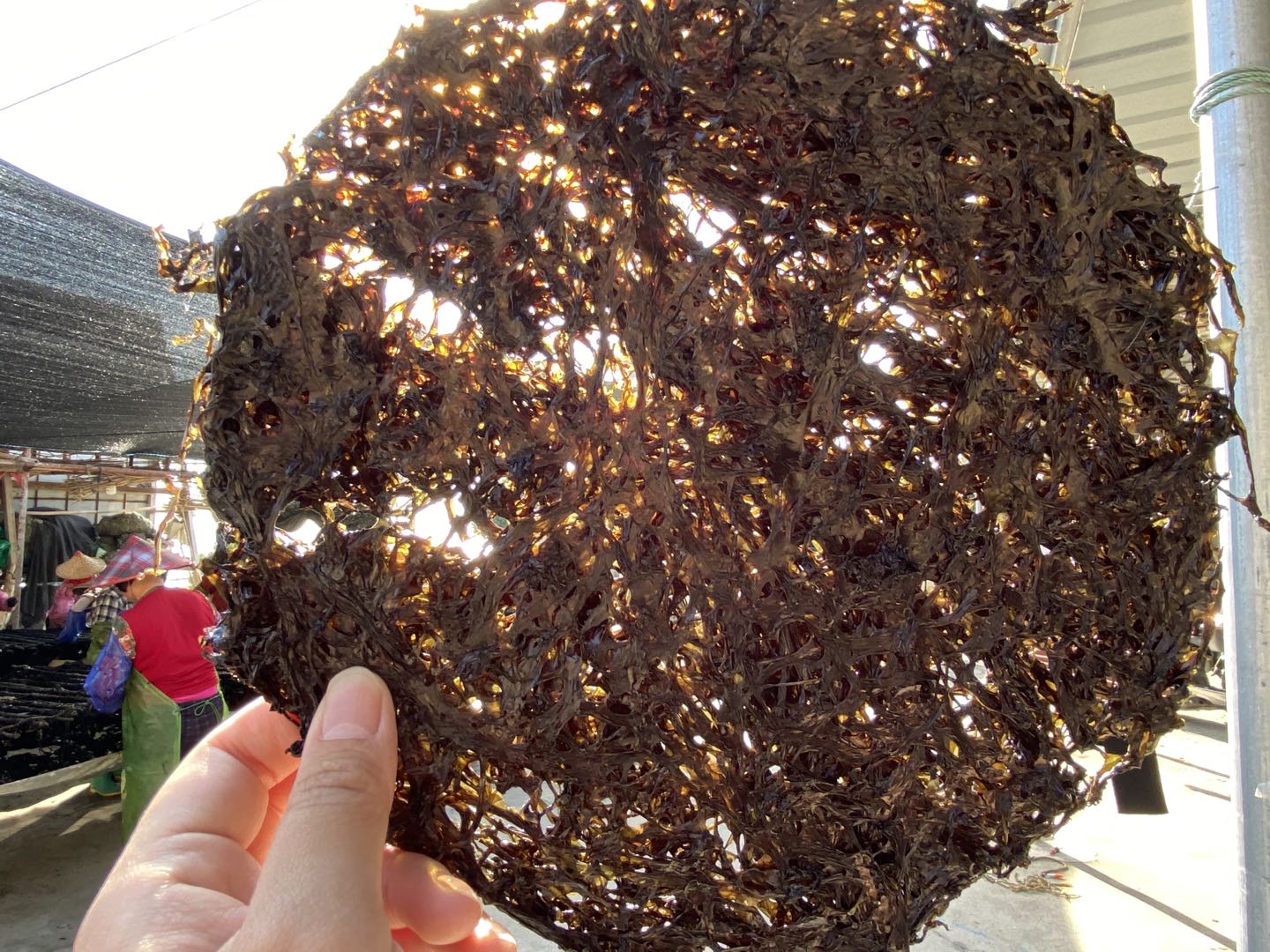 这几天,紫菜养殖户们正忙着收割、晾晒头水紫菜。今年天气晴好、水质适宜,南澳各处紫菜养殖场纷纷实现大丰收。一公斤头水紫菜价钱约在330元左右。