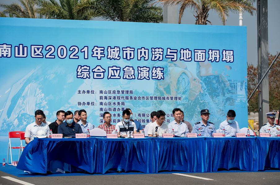 4月21日下午,南山区应急管理局组织开展南山区2021年城市内涝与地面坍塌综合应急演练,前海管理局城市管理处、南山街道办、区水务局等多部门联合参演。