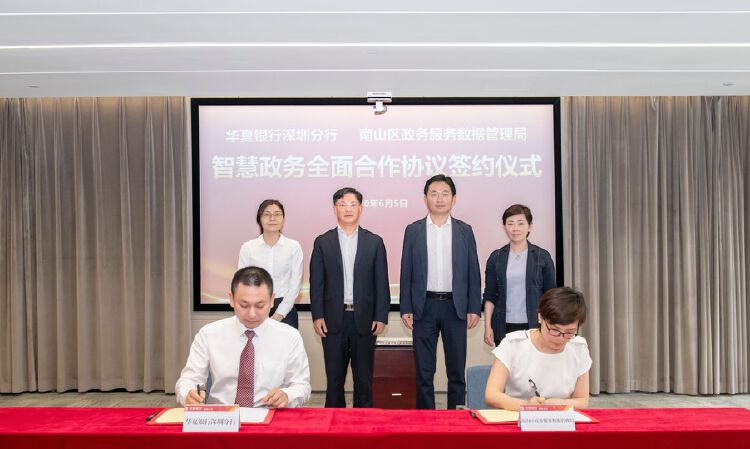 6月5日,华夏银行深圳分行与深圳市南山区政务服务数据管理局签署智慧政务全面合作协议,双方通过整合各自资源优势,共同打造“银行+政务”综合化服务体系,为南山区企业和居民提供“拎包入住”一站式便捷服务,助力深圳智慧城市建设,为“双区”发展全面赋能。