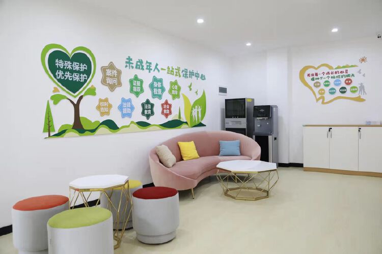 中心设有人身检查取证区、心理疏导区、询问取证区、陪护区四个功能区域。每个功能区域按照不同的功能要求,根据未成年人心理发育程度,在色调、布局、场景上进行温馨的人性化设置,以此来降低未成年人的紧张感和精神压力。四个功能区相互配合,在对身体检查、询问取证的同时开展治疗、疏导、危机干预等内容,形成完整的未成年人“一站式”工作模式。