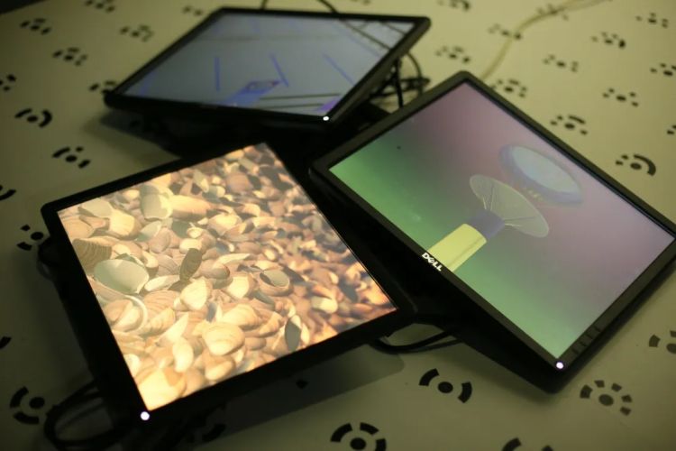 作品《指尖诗歌》则通过盲文的形式表述泰戈尔的诗句,来自中央美术学院的创作组合李博&王沂希望通过互动,让人感受盲人在用手指触碰到诗歌后的内心世界。艺术家迈克尔•弗雷和马里奥•凡•里肯巴赫的6屏交互动画《孩子》仿佛是社会群体现实的讽刺写照。作品用诙谐的交互动画提出了一系列迫切和直观的问题:当所有人都一模一样的时候,我们如何定义我们自己? 谁在掌控人群? 如果人们正朝着错误的方向前进呢?个人在哪里结束,群体在哪里开始?什么是出于选择,什么是出于胁迫?