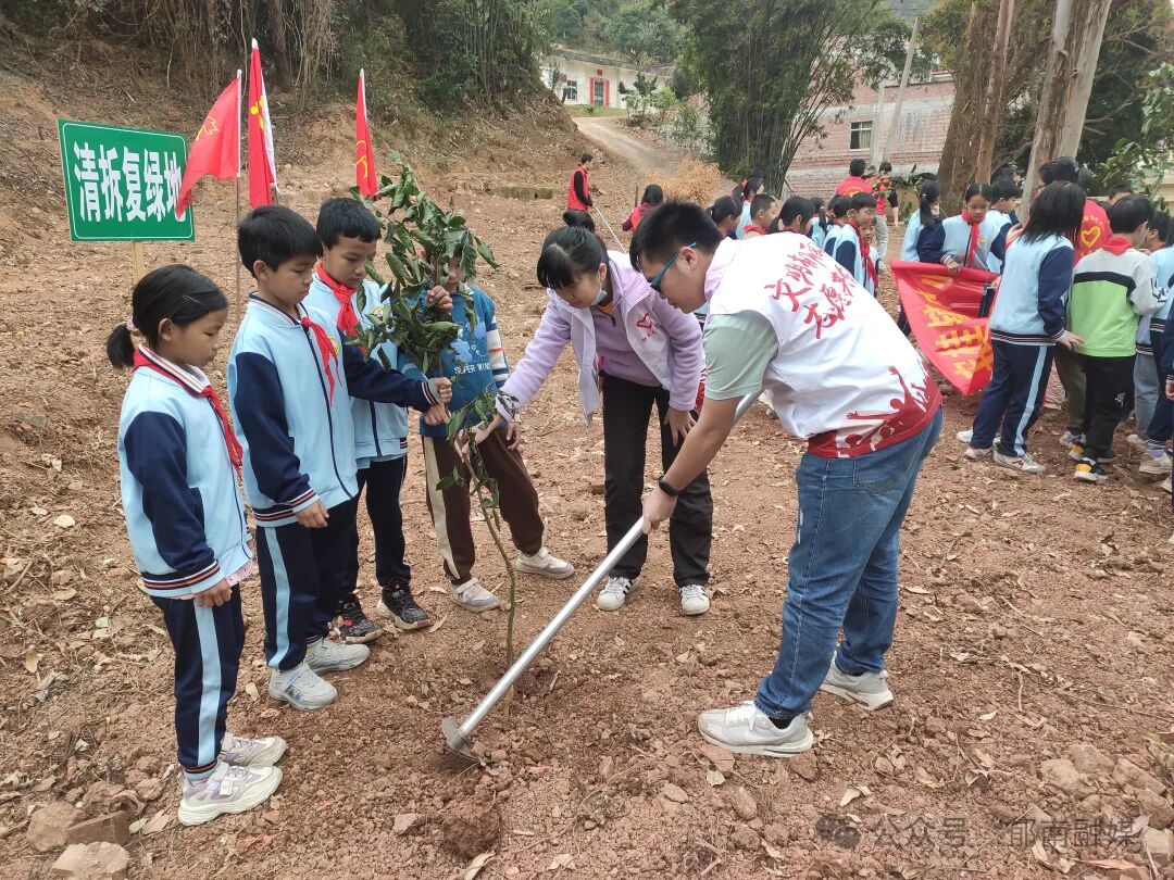 为全面贯彻落实绿美广东生态建设的部署要求,进一步提升全民保护环境和爱绿护绿意识,纵深推进“百千万工程”落地见效,3月6日上午,郁南县宋桂镇组织中心小学开展了“乡村绿化我有责——我和小树一起成长”植树活动,切实掀起植树造林热潮,按下“绿美”加速键。