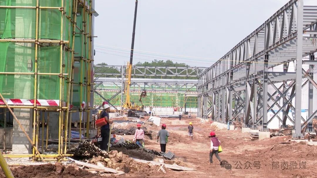 在位于郁南产业转移工业园的项目建设现场,工人挥汗如雨、机械轰鸣不停、车辆来回穿梭……在建工程项目为“年产18.5万吨NMP再生液及电子化学品项目”的一期工程。