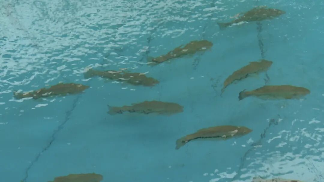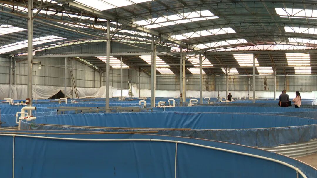 基地里,直径9米、高约2.5米的镀锌铁圆桶有序排列,饲养人员正忙碌着监测着水质、观察鱼群动态,并为桶内养殖的鱼苗撒下饲料。