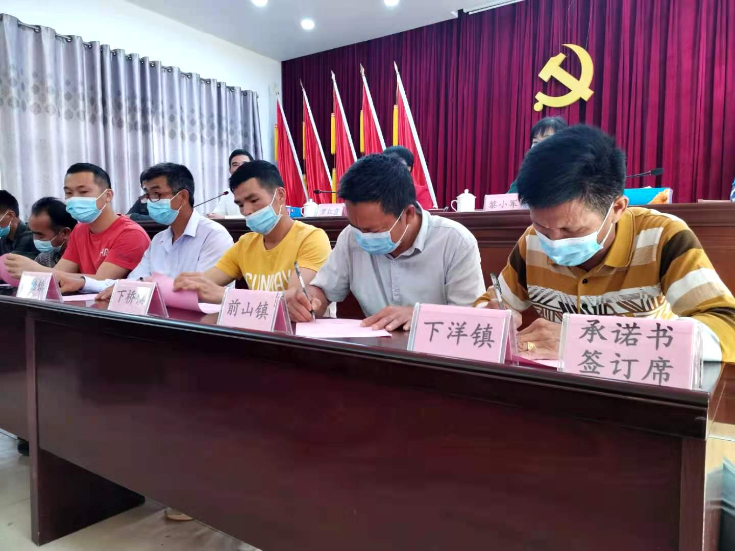 在与会人员共同见证下,来自曲界、下桥、锦和、龙塘、前山、和安等七个乡镇,以及华海、红星、友好、南华、五一等五个农场的果农代表分别签下了品控承诺书。截至3月13日,全县共签下菠萝品控承诺书13808份。其中,曲界镇签订5600份,下桥镇签订500份,锦和镇签订2000份,龙塘镇签订1146份,前山镇签订1800分,下洋镇签订1400份,和安镇签订1362份。
