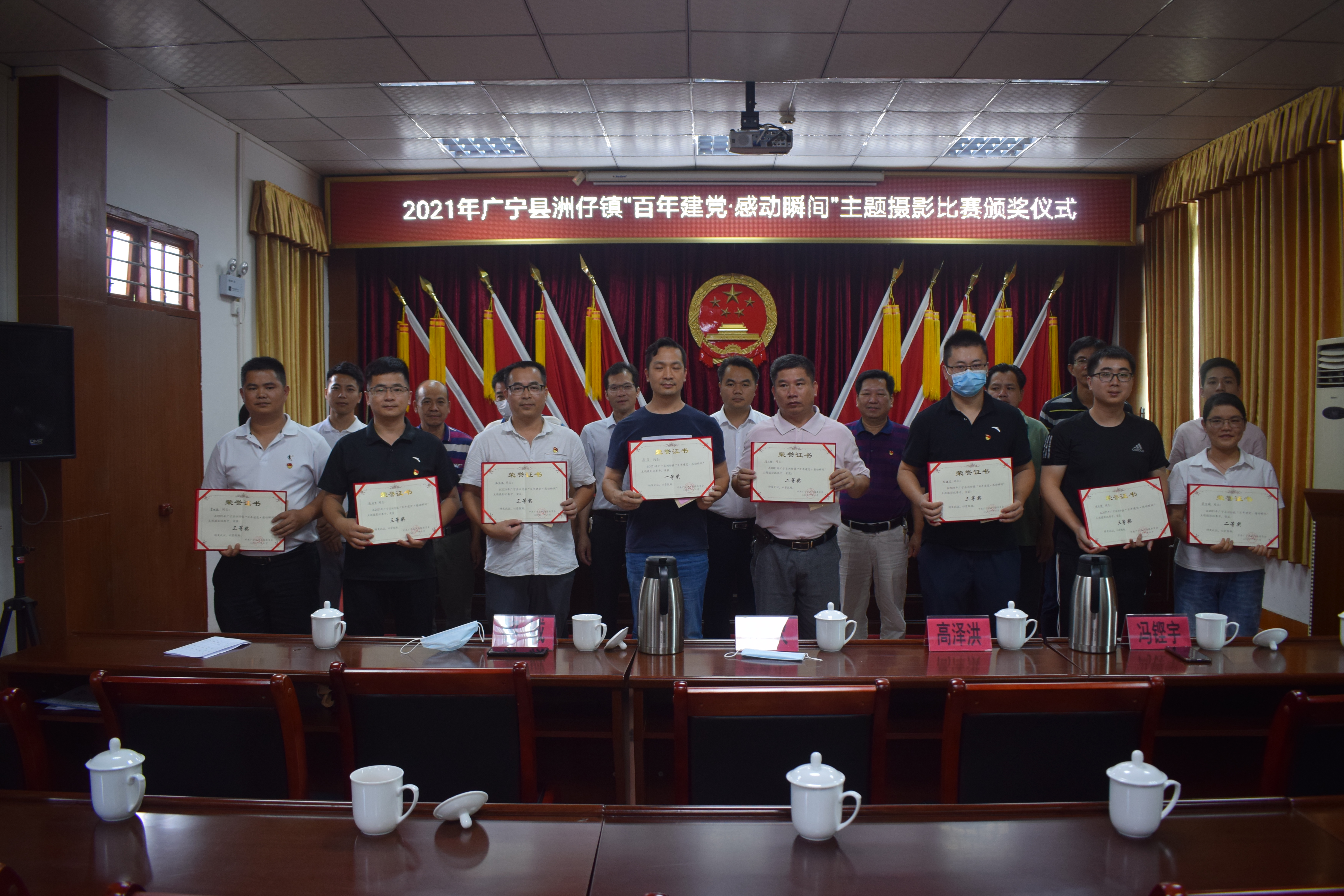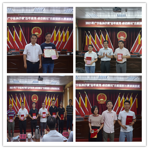 2021年6月18日下午,洲仔镇举办了“百年建党·感动瞬间”主题摄影比赛颁奖仪式,由镇长李承火同志、党委副书记高泽洪同志、党委委员黎诚同志、纪委书记冯铿宇同志分别为20名获奖者颁发了获奖证书。