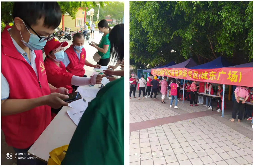 2021年6月5日,市民接种新冠病毒疫苗的意愿持续高涨,多个接种点现场大排长龙,不论是细雨中还是烈日下,在各个接种点中随处可见志愿者们忙碌的身影,广宁分局也积极响应疫情防控志愿服务号召,6月7日组织两名志愿者到城东广场协助广宁县疫情指挥部开展新冠疫苗接种派号志愿服务,派出四名志愿者到体育中心疫苗接种点协助群众填写表格、测温、扫码。