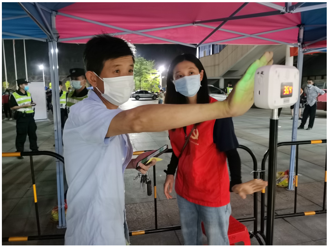 炎炎夏日下,室外的高温让大家汗如雨下,志愿者们却始终坚守服务一线,因疫情防控工作需要,志愿服务延长到晚上10点,环保志愿者们披星戴月、尽职尽责,积极做好指引登记工作,为接种市民提供了方便,也给医护工作者减轻了工作量。