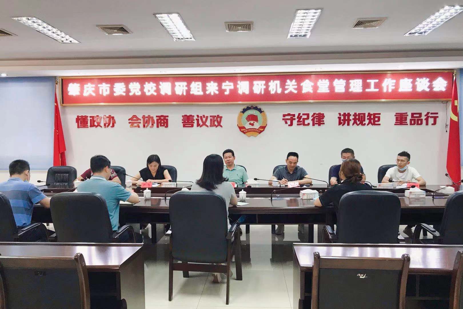 座谈会上,接待办、广宁县委县政府接待服务中心负责人分别向调研指导组汇报有关情况,市委党校后勤股相关工作人员作交流发言,市委党校郑东升副校长就如何加强饭堂管理,提升服务满意度提出指导意见,以“三提升三优化”,不断加强食堂管理,提高供餐质量,为服务对象提供优质餐饮服务。