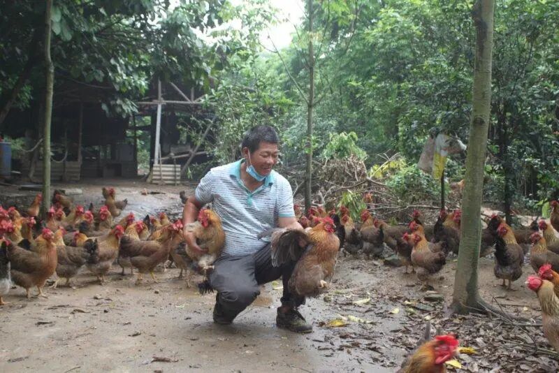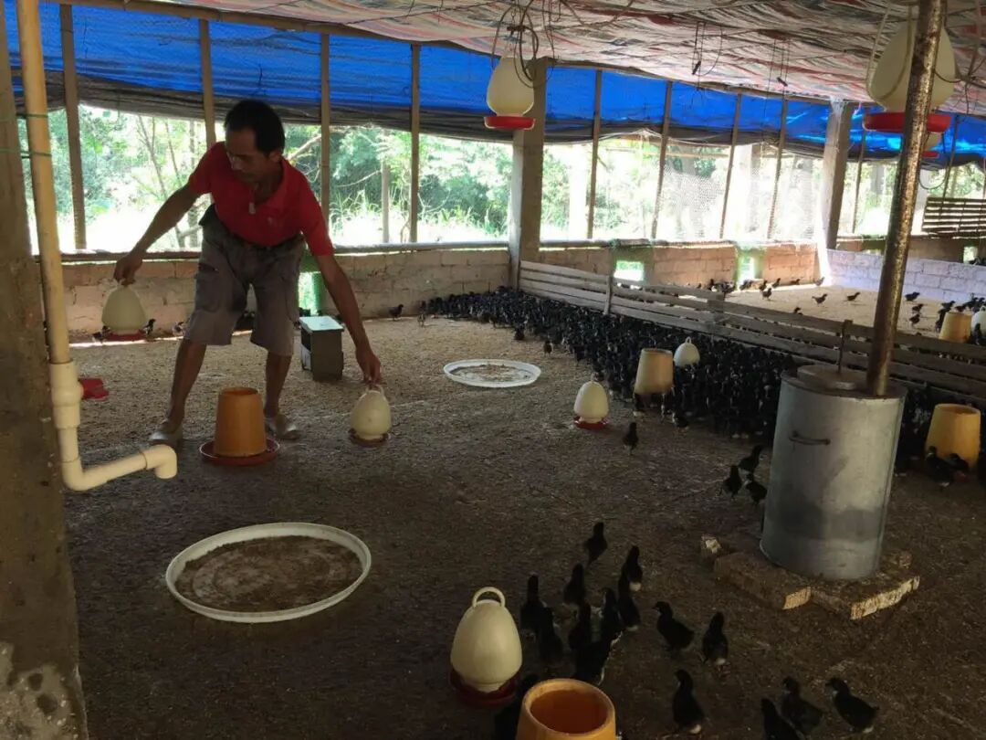 扶贫产业让曾志明家庭经济持续增收,曾志明对养殖扶贫鸡越来越有劲。(来源:四会市迳口镇人民政府供图)