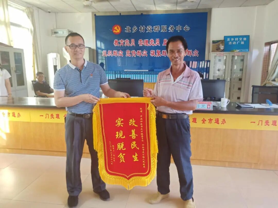 脱贫户邱永红感谢四会市迳口镇党委、政府帮扶,赠送锦旗。(来源:四会市迳口镇人民政府供图)