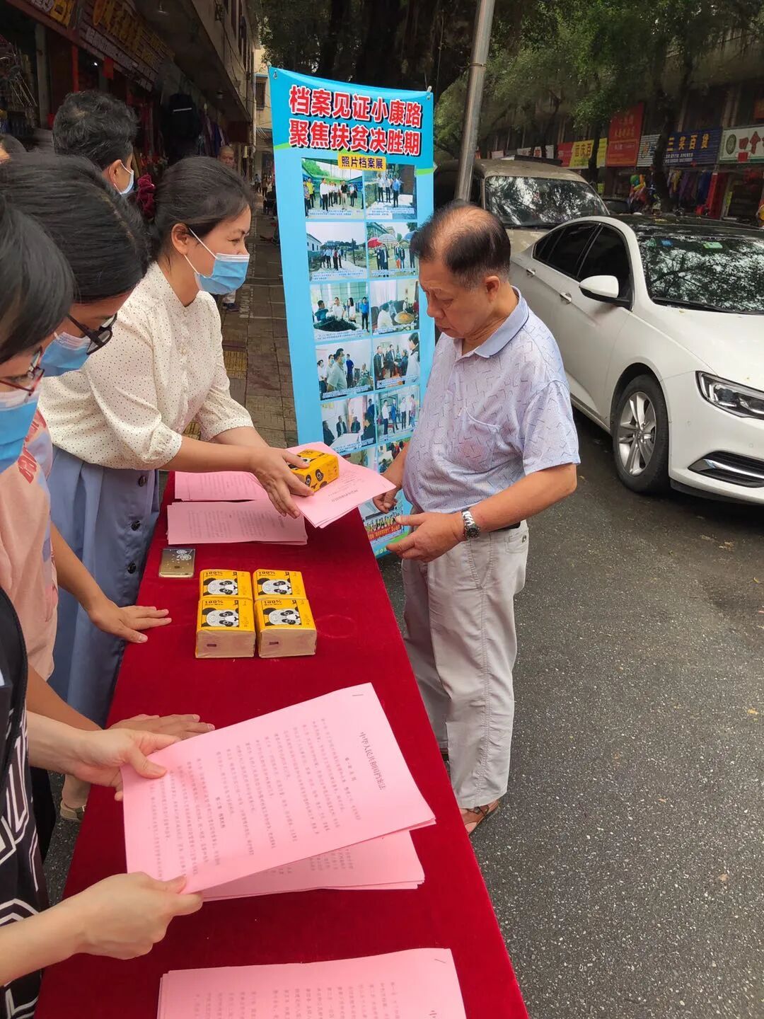 活动通过在旧市府门前摆放四会市脱贫攻坚的档案照片,悬挂活动主题“档案见证小康路、聚焦扶贫决胜期”的宣传横额,使“国际档案日”深入民心,并向四会市各镇(街道)、市直部门、市民派送宣传画册(兰台小红工作记)和派发《档案法》《四会市档案馆简介》等,使档案宣传深入单位、深入基层,营造坚持依法管档、依法治档的良好氛围。