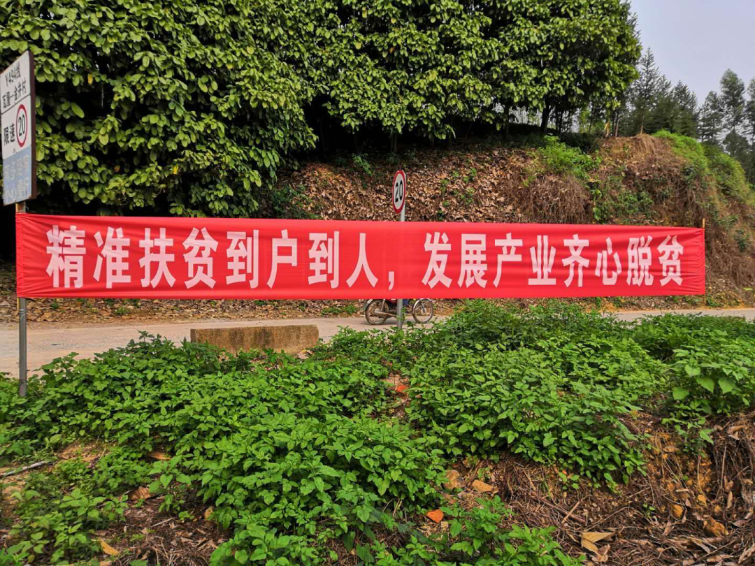 制作悬挂一批扶贫宣传标语,营造浓厚宣传氛围。(来源:四会市威整镇人民政府供图)