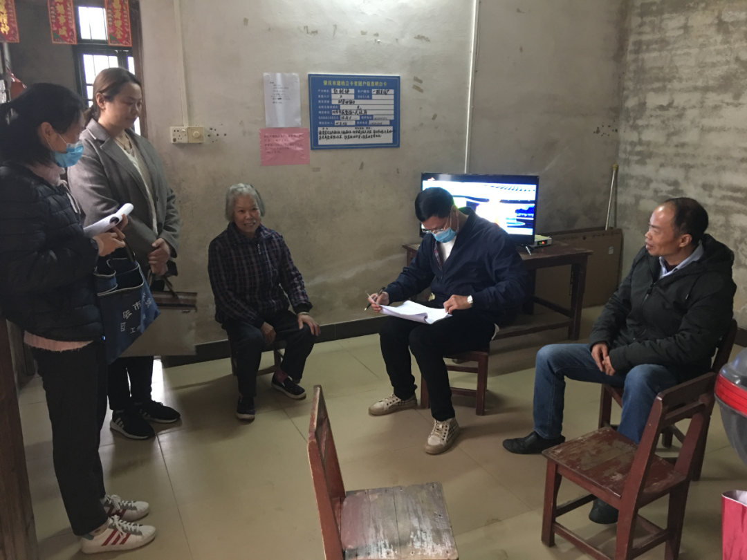 镇主要领导、村干部到贫困户家中走访调查,及时为贫困户解决困难。(来源:四会市威整镇人民政府供图)