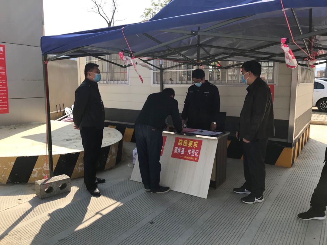 粤桂(四会-富川)扶贫协作产业园门口设置测温登记岗。(来源:四会驻富川工作组供图)