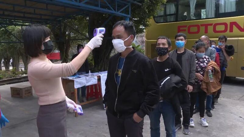 体温检测、登记、扫二维码填信息,职工们在现场工作人员的指引下完成一系列防疫措施后,被有序地安排返回宿舍休息整顿为复工做准备。