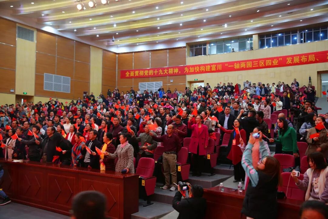 《不忘初心》、《祖国慈祥的母亲》等一首首寓意深厚、轻松愉悦、磅礴恢弘的音律潺潺倾泻,声声引人入境。音乐会以一首《我和我的祖国》大合唱结尾,现场观众激情饱满,一起挥舞手中国旗歌唱,让新年喜庆祥和气氛渲染富川县会议中心大礼堂,互相献上浓浓的新年祝福。