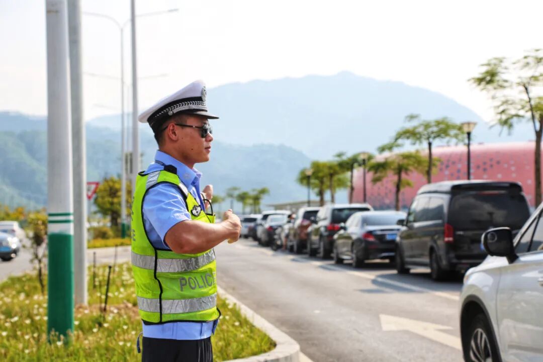 坚守前线的交警。(来源:四会市融媒体中心供图)