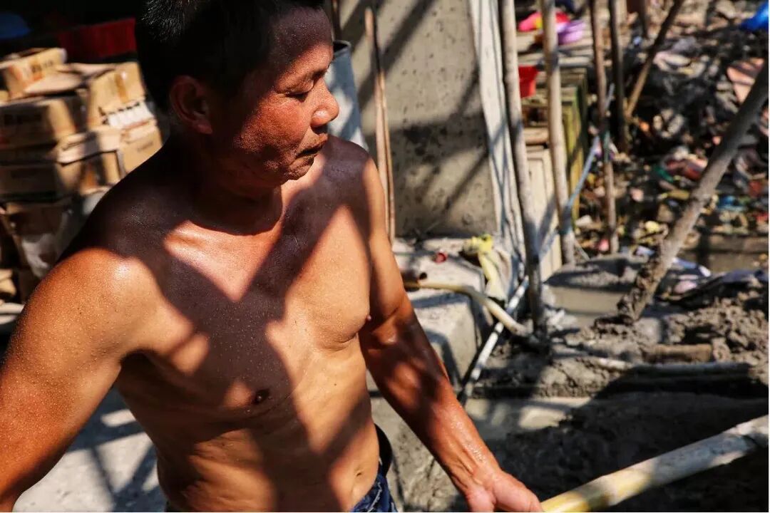 在烈日高空下,辛勤奋斗在工地上的城市建设者。(来源:四会市融媒体中心供图)