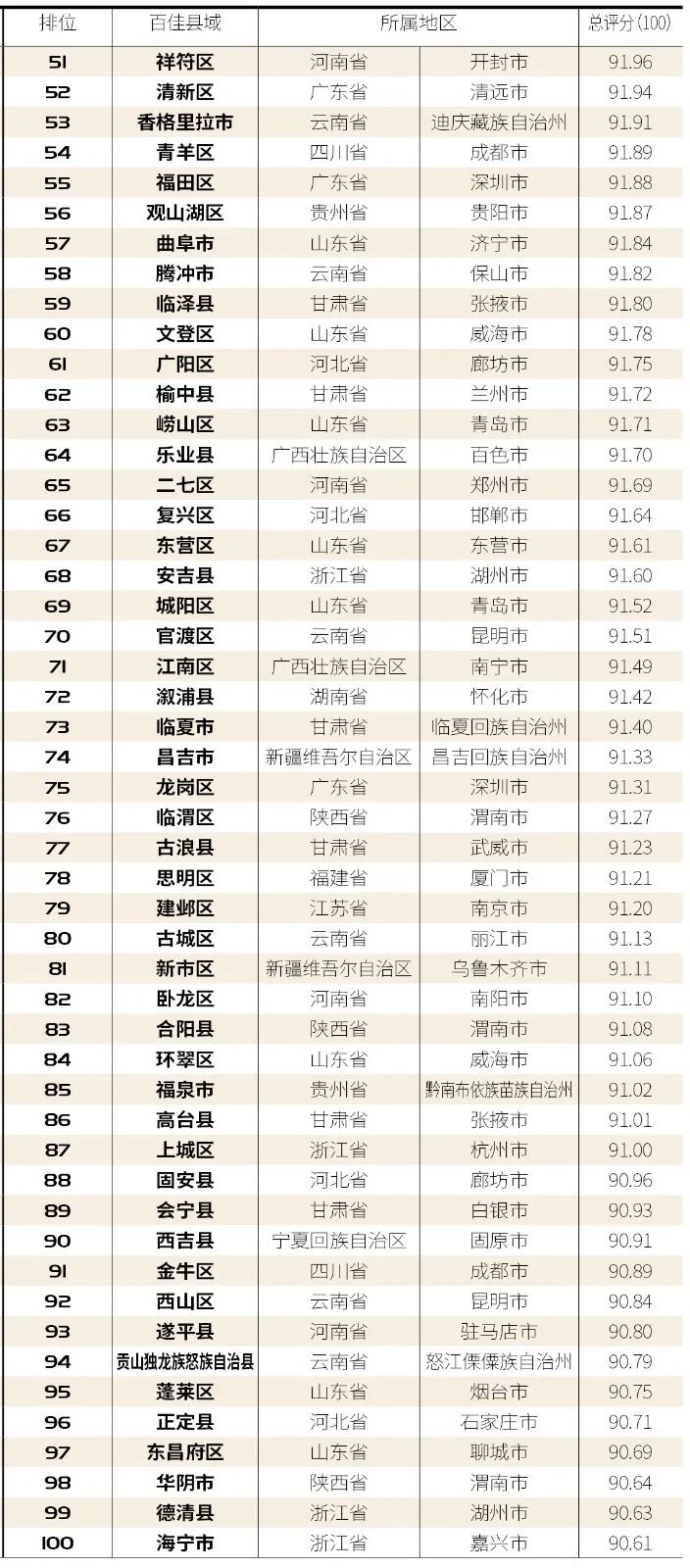 “2020中国最具幸福感百佳县市”榜单。(来源:中国小康网供图)