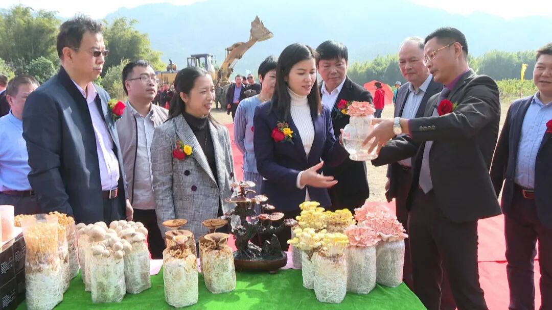 各种珍稀食用菌。(来源:四会市融媒体中心供图) 广东省微生物研究所教授、广东省食用菌行业协会会长杨小兵说“威整这里是个山沟,每天的昼夜温差比较大,菇特别喜欢,这里的空气好,山水资源也丰富。” 据了解,四会市威整镇珍稀食用菌种植项目将分阶段投资1亿元,通过公司+农户的形式,打造珍稀食用菌现代生态农业。近期项目将建设标准化菇包生产厂、立体出菇大棚、食用菌科普研学楼及其他附属设施,建成后预计年产300万袋富硒灵芝、竹荪等珍稀食用菌菇包,接待科普研学教育5-10万人次。 四会市威整镇党委书记吴伟文说“这个项目集产学研、旅游于一体,结合威整镇在“一核一轴一廊”中要发展“一廊”的经济定位,可以精准实施扶贫产业帮扶。将菌包发放给农户、贫困户去种植,带动农民增收、增产。接下来,这个产业将打造成为“一镇一特色”产业,助推我们四会特色农业的发展。”该项目的落地对威整的经济社会发展具有重要意义。四会市威整镇有关负责人表示,将全力做好项目服务工作,把项目培育成为威整特色农业产业支柱,助推四会乡村振兴。