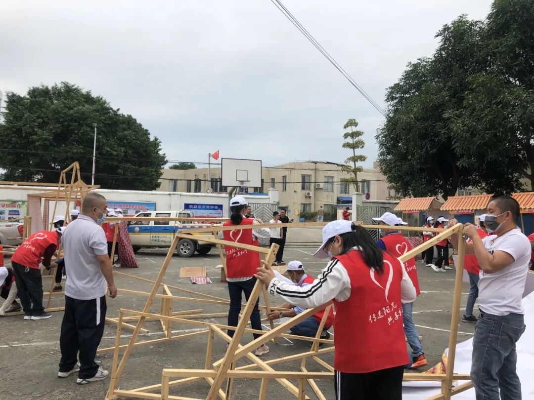 正一帮扶促进会志愿者布置场地。(来源:四会市文明办供图)