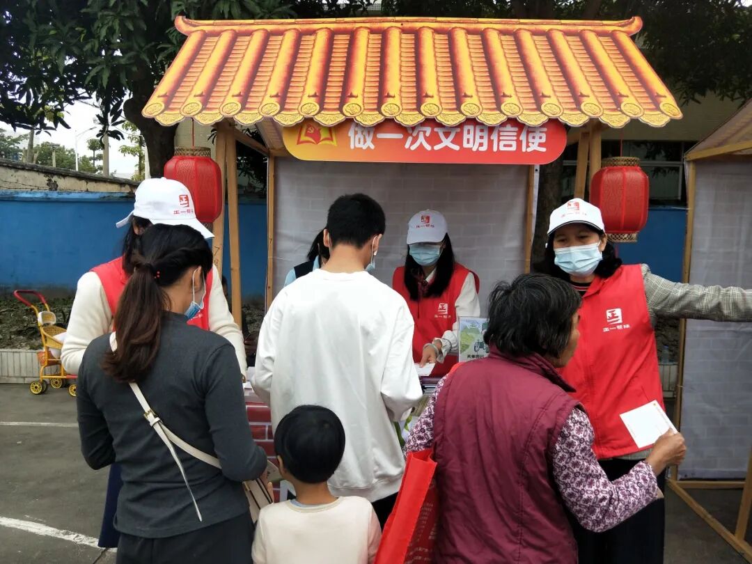 在集市活动十个主题“摊位”前,前来参与活动的群众络绎不绝。大家都争先收集“游园卡”印章只要集齐6个主题摊位的印章,就可以免费在“尝一碗家乡美食”“做一次文明信使”摊位获得相应奖励。