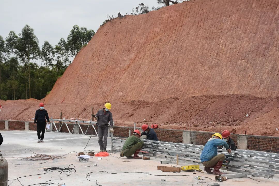 四会海凤生态农业有限公司总经理郭永恒说“通过合理安排紧凑施工,建设进度逐渐加快。项目复工至今一个多月,应到施工人员105名,实到施工人员100名,复工率达到95.24%。随着疫情防控形势逐渐好转,我们对追回进度充满信心。我们每天都与施工单位保持沟通联系,按照目前进度,预计工程于2020年7月初完工。考虑目前正值雨季对施工进度影响较大的问题,为实现项目早投产、早出效益,我们正在积极协调施工单位从其他项目上抽调施工人员,加快项目建设,争取早日完工交付使用。”