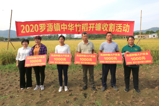 活动期间,为鼓励更多村民参与种植“中华竹稻”,活动现场为5名先进种植大户和3个优秀专业合作社进行了颁奖。