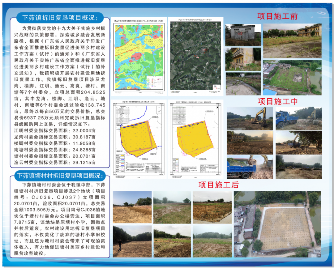 近年来,四会市积极推动农村旧住宅、废弃宅基地、空心村等闲置建设用地拆旧复垦,有力地促进了四会市美丽乡村建设。2020年4月7日上午,四会市召开农村建设用地拆旧复垦工作现场推进会,总结推广试点工作经验,部署推动全市农村建设用地拆旧复垦工作。