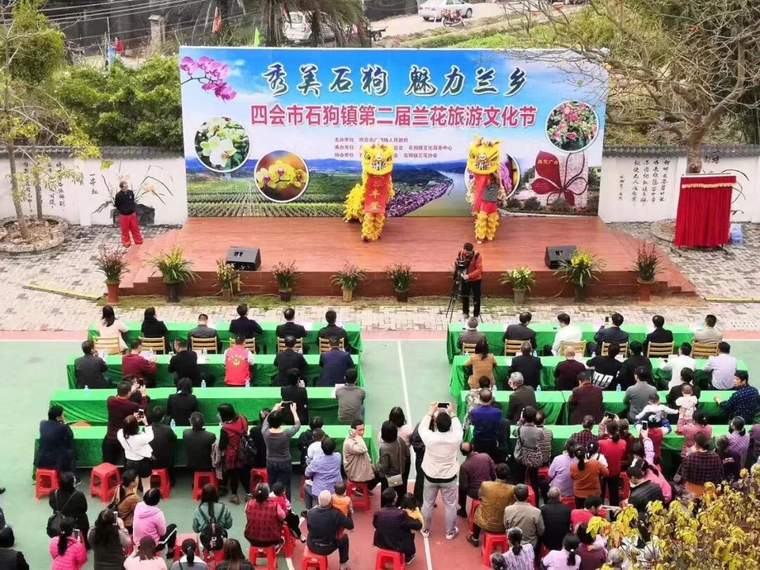 1月10日上午,四会市石狗镇第二届“兰花旅游文化节”开幕式,在石狗程村隆重举行。现场旌旗招展,锣鼓喧天,龙飞狮舞。活动以“秀美石狗,魅力兰乡”为主题,旨在以兰会友,大力宣传推广四会市石狗镇兰花品牌,彰显石狗兰花产业发展的活力,并以此为契机,提振石狗镇其他特色农产品的知名度,带动当地花卉、旅游、餐饮等产业的发展。