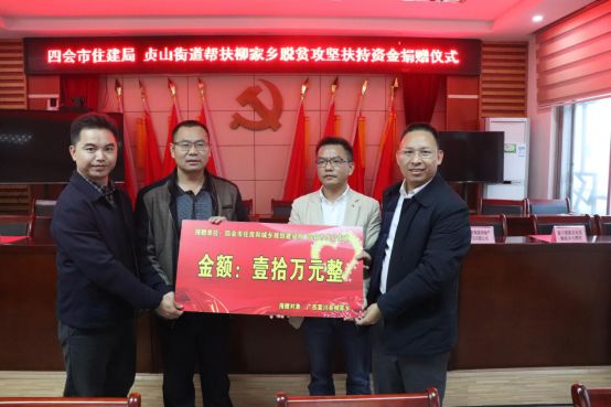 四会市贞山街道、住规建局联合捐赠10万元帮扶资金支持柳家乡脱贫攻坚,并会同企业代表分别慰问了3户贫困户,送上慰问金和慰问品。四会市碧海湾房地产开发有限公司等3家企业分别与柳家乡3个深度贫困村签订了结对帮扶协议,将在劳务支持、扶贫助学方面给予大力帮扶,助力深度贫困人口早日脱贫致富。