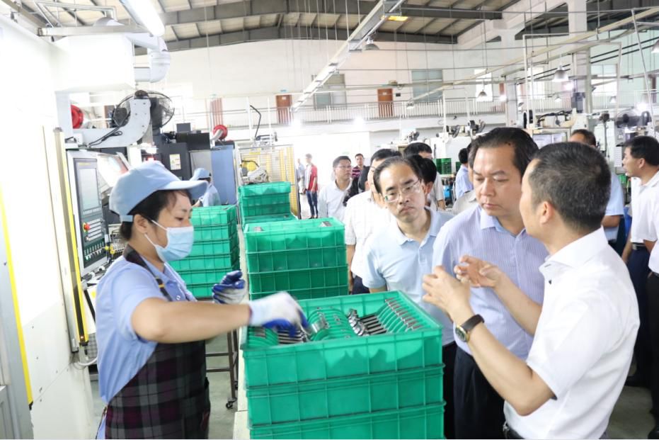 视察广东实力连杆厂有限公司生产情况。(来源:四会驻广西富川扶贫协作工作组供图)