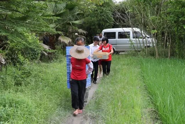 四会市总工会工作人员协助抬鹅苗进场。(来源:四会市广播电视台供图)