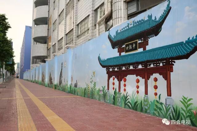 精美墙绘构筑城市亮丽风景线,很多原本空置的围栏、石墙变成了风格不一、内容多样的手绘画。墙壁为纸,泼墨挥毫,一幅幅独具四会特色的画卷舒展开来,把四会的历史文化与文明新风向路人娓娓道来。