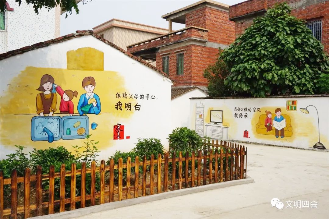 村中精美墙绘。(来源:四会市文明办供图)