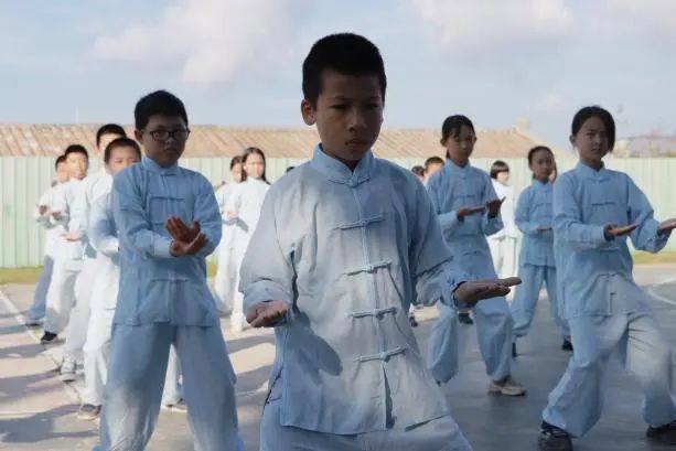 搂膝拗步、手挥琵琶、左揽雀尾……5月14日一大早,在潮州市饶平县汛洲小学的操场上,全校80余名学生在袁满老师的领操下,演练起了平日大课间的十二式太极操。三分半钟的演示中,场下每个同学的动作柔和、轻灵,有板有眼。