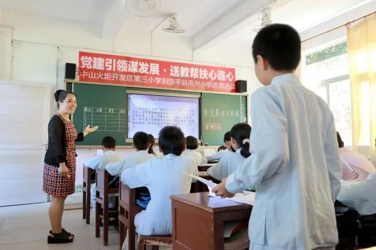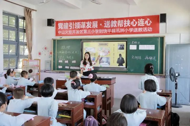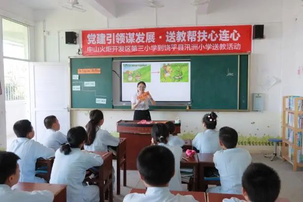 在当天开展的火炬区第三小学到饶平县汛洲小学送教活动中,五名来自火炬区第三小学的骨干教师经过近七个小时的车程,并“漂洋过海”来到汛洲岛,向汛洲小学呈现了精心准备的语文、数学、英语、道德与法治共六节优质课,并为学生送上了文具以及课外书籍。