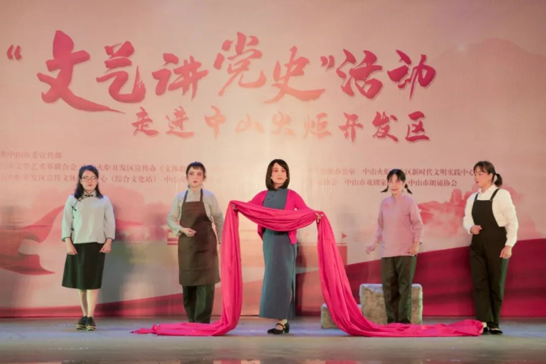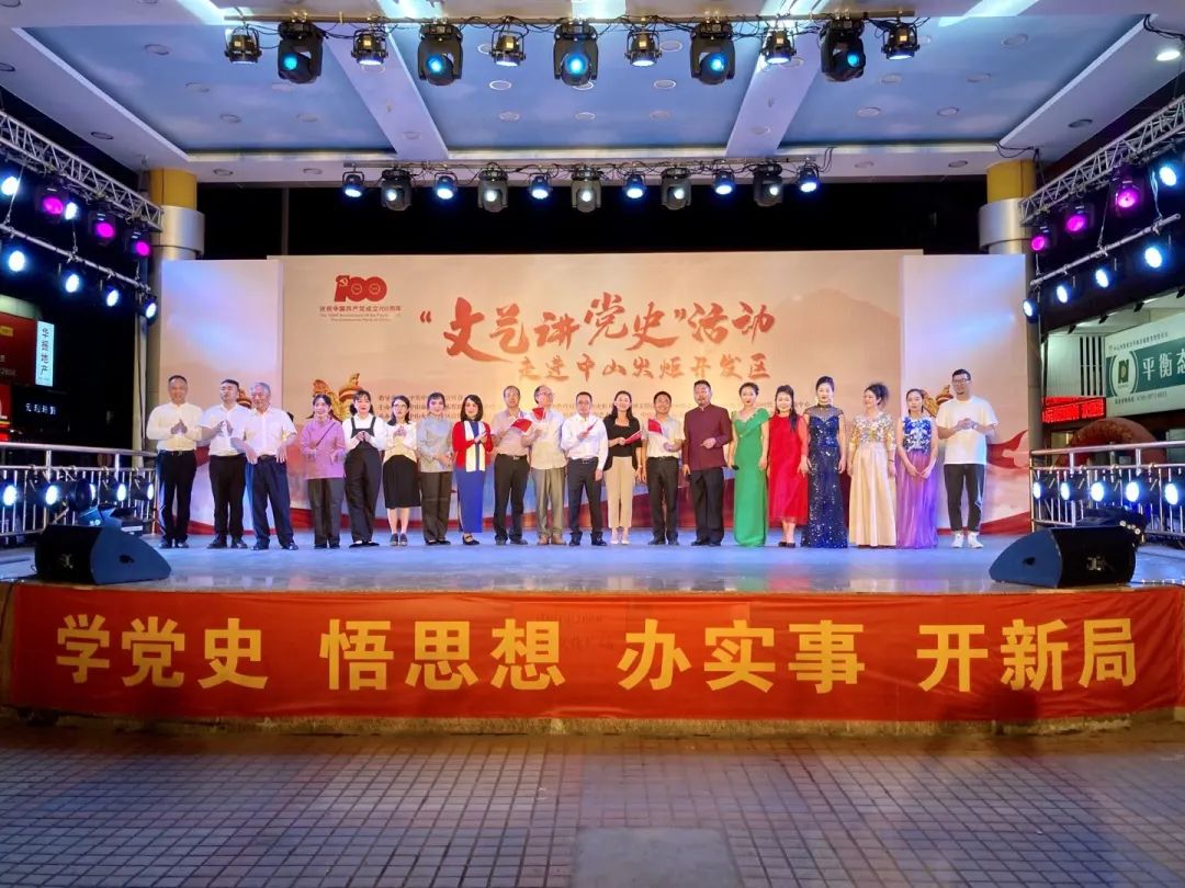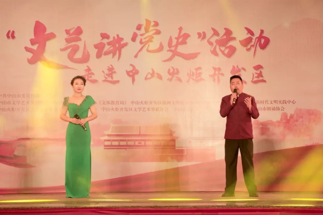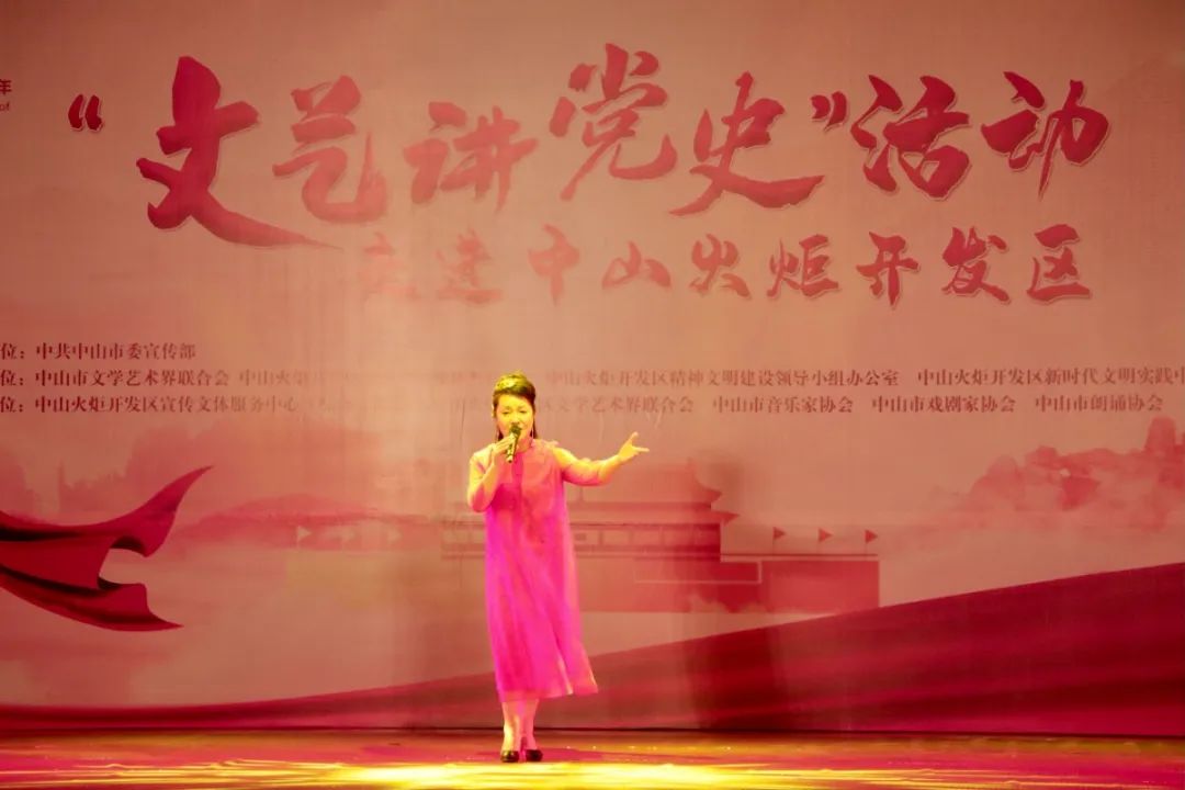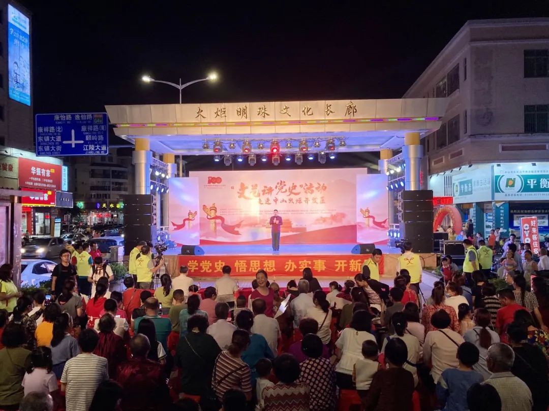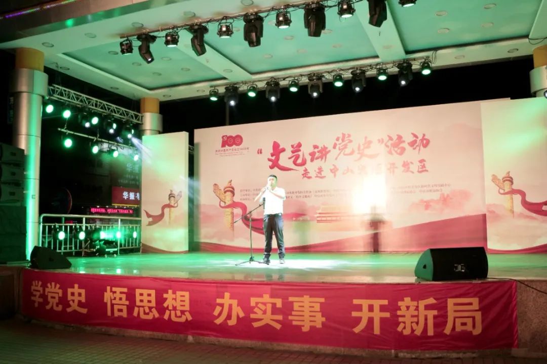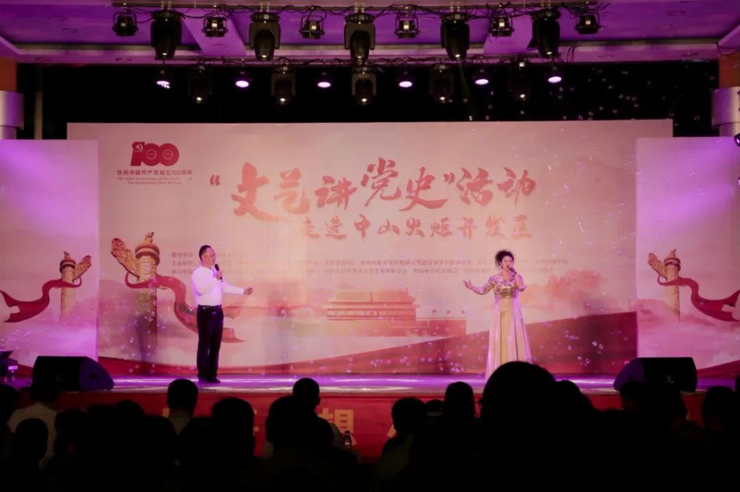 当晚,由中山市文联、火炬区宣传办(文体教育局)、火炬区文明办、火炬区新时代文明实践中心主办的庆祝中国共产党成立100周年“文艺讲党史”文艺汇演活动在火炬区明珠文化广场开展,为现场观众献上包含歌曲、葫芦丝独奏、古筝独奏、朗诵、吉他弹唱、粤剧、合唱等一系列文艺演出,用文艺汇演的方式重温党史,唱响党的百年历史伟业赞歌,让红色基因、革命薪火代代传承。