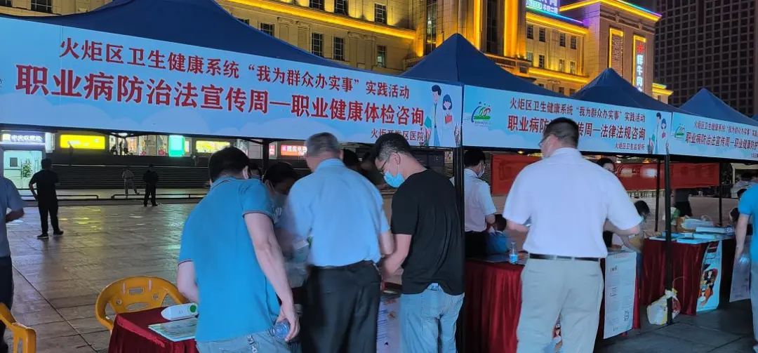 4月25日晚,由中山市卫生健康局及火炬区卫计局、人社分局、总工会主办的《职业病防治法》宣传周启动仪式在区太阳城商业广场举行,活动通过职业健康咨询摊位、趣味游戏、有奖问答等形式,向参与群众和职工普及职业健康知识,并提供免费职业健康检查服务。