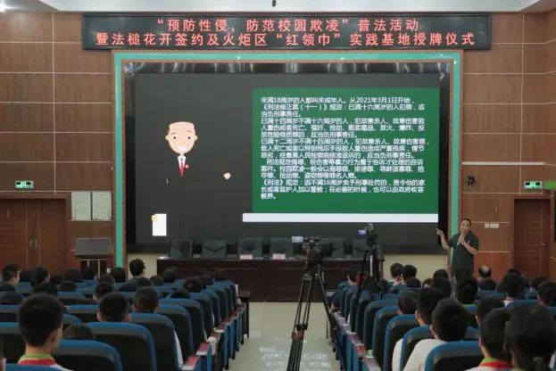 近年来,火炬区稳步推进学校法治教育工作,以普法教育强化行为规范教育,发挥道法、思政、班会等课堂主渠道作用,开展中小学校长、书记上好思政第一课评比活动,开展丰富多彩普法活动,广泛开展中小学《民法典》宣传普及教育,与中山市第一人民法院联合开展“法院零距离”法制实践等活动,面向学生、家长、老师扎实开展预防性侵、校园欺凌工作。