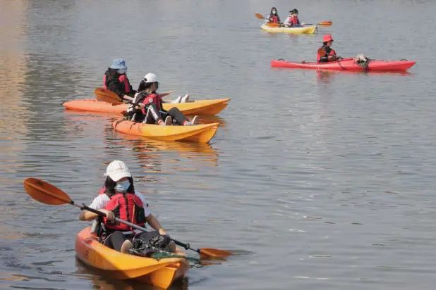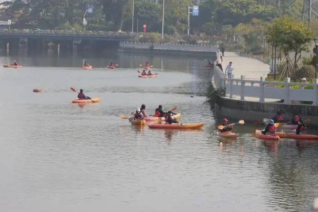 活动现场,在认真聆听专业教练讲解巡河理论、应急救援知识与划艇技巧后,20余名身穿“河小青”救生衣的火炬区大学生手持划桨,穿好救生衣,拿好打捞装备,在专业人员的带领下,乘皮划艇沿小隐涌往东行进,边划行边打捞水面上不可降解的垃圾,并巡查排污口、漂浮物、违建物等情况。